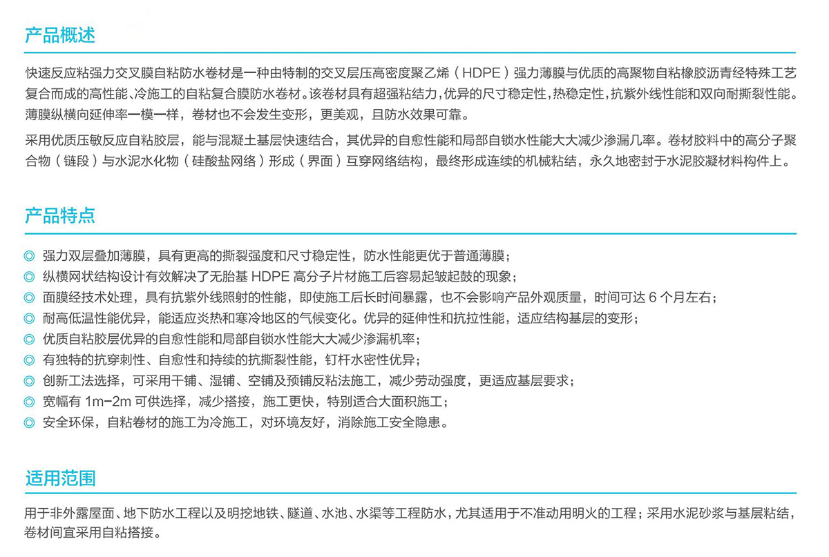 快速反应粘强力交叉膜自粘卷材